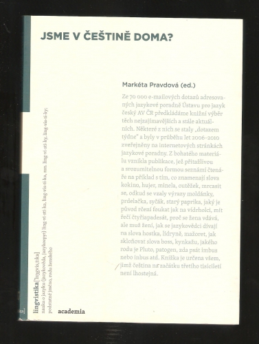 Z více než sedmdesáti tisíc dotazů zaslaných e-mailem jazykové poradně Ústavu pro jazyk český AV ČR předkládáme knižní výběr těch nejzajímavějších a stále aktuálních. Některé z nich se staly „dotazem týdne“ a byly v průběhu let 2006–2010 zveřejněny na internetových stránkách jazykové poradny. Z bohatého materiálu vznikla publikace, jež přitažlivou a srozumitelnou formou seznámí čtenáře například s tím, co znamenají slova kokino, hujer, minela, outěžek, mrcasit se, odkud se vzaly výrazy moldánky, prdelačka, syčák, starý paprika, jaký je původ rčení foukat jak na vidrholci, mít řečí čtyřiapadesát, proč se žena vdává, ale muž žení, jak se jazykovědci dívají na slova hostka, lídryně, mažoret, jak doporučují skloňovat slova boss, kynkažu, jakého rodu je Pluto, patogen, tsunami, zda psát imbus, nebo inbus atd. Knížka je určena všem, jimž čeština na začátku třetího tisíciletí není lhostejná.