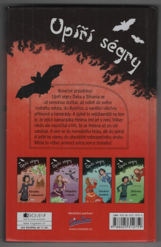 Konečně prázdniny! Upíří ségry Daka a Silvania se už nemohou dočkat, až odletí do svého rodného města, do Bystřice, a navštíví všechny příbuzné a kamarády. A úplně to nejúžasnější na tom je, že jejich kamarádka Helena smí jet s nimi. Vůbec nikdo ale nepočítal s tím, že se Helena až po uši zamiluje. A sice ne do normálního kluka, ale do upíra. A ještě ke všemu do obzvláště nebezpečného druhu. Může tu vůbec pomoct extra porce česneku?