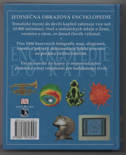 Tematické řazení do devíti kapitol zahrnuje více než 10 000 informací, čísel, a statistických údajů o Zemi, vesmíru a všem, co dosud člověk vykonal. Najdete zde přes 1000 barevných fotografií, map, diagramů, kreseb a průřezů dokumentujících lidské poznání na počátku třetího tisíciletí. Encyklopedie do kapsy je nepostradatelný praktický zdroj vědomostí pro každodenní život.