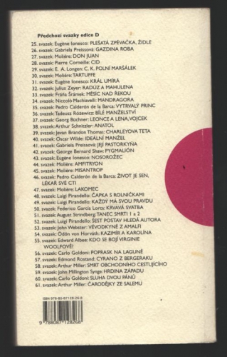 Drama amerického autora čerpá ze skutečných událostí z konce 19. století v americkém městečku Salem. Na počátku příběhu stojí žárlivost, jejímž důsledkem je tragický hon na čarodějnice. Vychází jako 61. svazek edice D v překladu Kateřiny Hilské.