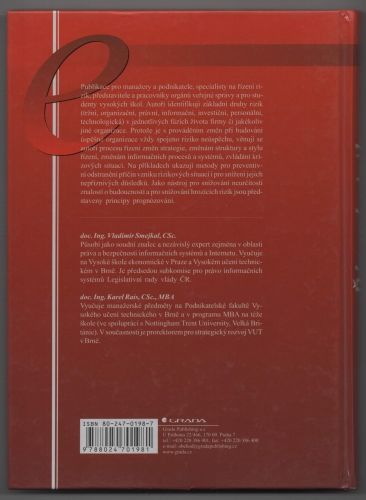 Publikace pro manažery a podnikatele, specialisty na řízení rizik, představitele a pracovníky orgánů veřejné správy a pro studenty vysokých škol. Autoři identifikují základní druhy rizik v jednotlivých fázích života firmy či jakékoliv jiné organizace. Protože je s prováděním změn při budování úspěšné organizace vždy s