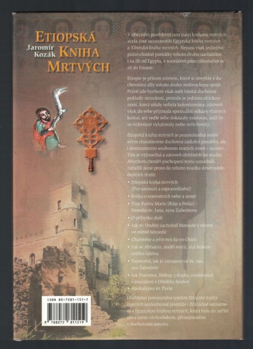 Etiopská kniha mrtvých je kolekcí deseti souborů zádušních textů, které nesou svébytnou pečeť etiopské esoteriky včetně tzv. manter a ukazují její inspiraci egyptskými, křesťanskými a koptskými prvky. Součástí výpravné knihy je jedinečná barevná příloha a mapa etiopských svatyň a klášterů.