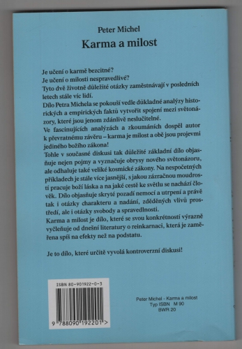 Autor se pokouší vedle analýzy faktů vytvořit spojení mezi učením o karmě a o milosti. Došel k závěru, že karma je milost a obě jsou projevy jediného božího zákona. Objasňuje pozadí nemocí a utrpení, ale i otázky svobody a spravedlnosti.