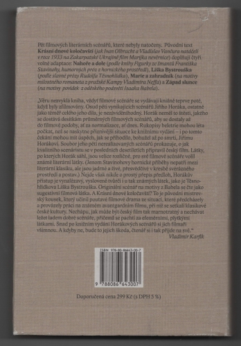 Kniha přináší pět filmových literárních scénářů, které nebyly dosud natočeny. Původní text Krásní dnové koločavští (jak Ivan Olbracht a Vladislav Vančura natáčeli v roce 1933 na Zakarpatské Ukrajině film Marijka nevěrnice) doplňují čtyři scénáře na motivy literárních děl jiných autorů: Nahoře a dole (podle knihy Figurky ze šmantů, humorných próz z kladenského, hornického prostředí Františka Stavinohy), Liška Bystrouška (podle slavné prózy Rudolfa Těsnohlídka), Marie a zahradník (podle milostného romaneta Vladimíra Neffa, s dnes už zaniklou atmosférou pražské hrnčířské Kampy) a Západ slunce (na motivy povídek Isaaka Babela z oděského podsvětí). Ani v jednom případě nejde o "prostou" adaptaci - autor si vypůjčil osu příběhu a motivy, základní dialogy, jinak s látkou nakládal volně - vymýšlel nové scény, nové postavy, domýšlel stávající - např. motiv lišky Bystroušky a jejího nápadníka převedl do lidských postav. Jeho největší ctižádostí bylo napsat scénáře, které by byly podkladem ke skutečně filmovému, obrazovému ztvárnění látky.