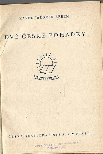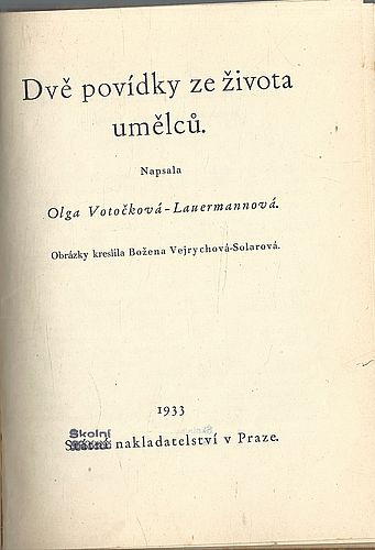 Navíc vevázány tituly : Dvě povídky ze života umělců ( Olga Votočková-Lauermannová, Školní nakladatelství, 1933, ilustrovala Božena Vejrychová-Solarová) + Dvě české pohádky ( K.J.Erben, Česká grafická unie, 1941, ilustroval Jaroslav Lebeda)