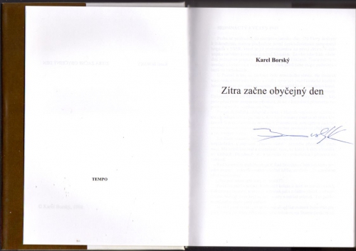 Podpis Karla Borského - Praha 17. květen 1945. Po Staroměstském náměstí defilují jednotky 1.československého armádního sboru. Mnozí s těch, kteří sedí na korbách vozidel se samopaly na prsou, mají za sebou pouť, která trvala několik let. Útěk z okupované vlasti přes Polsko a vstup do čs.jednotky, která vznikla v Buzuluku, boje na Ukrajině, Dukle, na Slovensku. Ne zdaleka všichni se vrátili domů...
