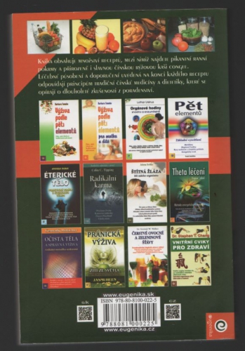 Skvělá příručka pro všechny, kteří se zajímají o zdravou výživu, stejně jako o čínskou medicínu. V první řadě zde najdete množství receptů, rozdělených takto: čínská rýžová kaše, ranní jídla (pikantní a sladká), pokrmy z obilí, vegetariánské polévky, saláty a dipy, zeleninová jídla, pokrmy z tofu, vegetariánská jídla z luštěnin, asijské ořechové omáčky k zelenině i masu, maso, ryby, sladká jídla, koláče, chléb, nápoje (hlavně čaje, ale i jiné). Na konci každého receptu se uvádí léčivé působení daného pokrmu a doporučení v souladu s principy tradiční čínské medicíny. Další kapitoly knihy jsou: Co je to nemoc? Tepelné působení potravin. Pět elementů. Chutě. Vaření v souladu s ročním obdobím. 21 pravidel stravitelnosti.