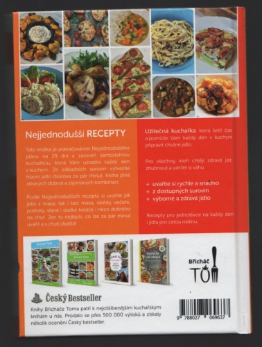 Kniha Nejjednodušší recepty pro každý den je nezbytným průvodcem pro ty, kteří chtějí pokračovat v Nejjednodušším plánu na 29 dní, zhubnout další kg, usnadnit si vaření a cítit se lépe. Jsou to jednoduše připravená jídla ze surovin, které vždy najdete doma. To nejsnadnější, co lze ve zdravé kuchyni a z pár surovin vykouzlit! U většiny receptů trvá příprava jen 30 minut. Kompletní jídlo taky často připravíte jen v jednom hrnci, na plechu v troubě nebo na pánvi. Ideální pro ty, kteří nemají čas a přesto chtějí jíst zdravě. Velmi oceníte přípravu hlavně v situaci, kdy si chcete něco rychlého připravit na večeři nebo na druhý den do práce. Recepty jsou sestaveny tak, aby Vám po nich nebylo těžko, aby se tělu usnadnilo trávení a necítili jste se po jídle nafouklí. Součástí knihy je i úvodní textová část s dalšími radami a vysvětlením, které Vám při zdravém stravání hodně pomohou.