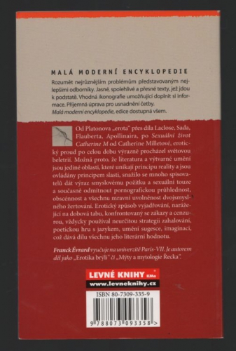 Od Platonova "erota" přes díla Laclose, Sada, Flauberta, Apollinaira, po "Sexuální život Catherine M" od Catherine Milletové, erotický proud po celou dobu výrazně procházel světovou beletrií. Možná proto, že literatura a výtvarné umění jsou jediné oblasti, které unikají principu reality a jsou ovládány principem slasti, snažilo se mnoho spisovatelů dát výraz smyslovému požitku a sexuální touze a současně odmítnout pornografickou průhlednost, obscénnost a všechnu mravní uvolněnost dvojsmyslného žertování. Erotický způsob vyjadřování , narážející na dobová tabu, konfrontovaný se zákazy a cenzurou, vždycky používal neurčitou strategii zahalování, poetickou hru s jazykem, umění sugesce, imaginaci, což dává dílu všechnu jeho literární hodnotu.