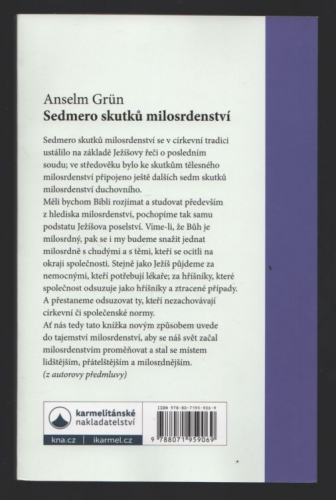 Sedmero skutků milosrdenství se v církevní tradici ustálilo na základě Ježíšovy řeči o posledním soudu; ve středověku bylo ke skutkům tělesného milosrdenství připojeno ještě dalších sedm skutků milosrdenství duchovního. Měli bychom Bibli rozjímat a studovat především z hlediska milosrdenství, pochopíme tak samu podstatu Ježíšova poselství. Víme-li, že Bůh je milosrdný, pak se i my budeme snažit jednat milosrdně s chudými a s těmi, kteří se ocitli na okraji společnosti. Stejně jako Ježíš půjdeme za nemocnými, kteří potřebují lékaře; za hříšníky, které společnost odsuzuje jako hříšníky a ztracené případy. A přestaneme odsuzovat ty, kteří nezachovávají církevní či společenské normy. Ať nás tedy tato knížka novým způsobem uvede do tajemství milosrdenství, aby se náš svět začal milosrdenstvím proměňovat a stal se místem lidštějším, přátelštějším a milosrdnějším. (z autorovy předmluvy)
