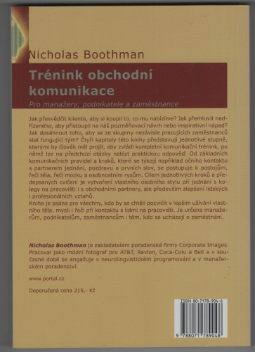 Jak přesvědčit klienta, aby si koupil to, co mu nabízíme? Jak přemluvit šéfa, aby přistoupil na náš pozměňovací návrh nebo inspirativní nápad? Jak dosáhnout toho, aby se ze skupiny nezávisle pracujících zaměstnanců stal fungující tým? Čtyři kapitoly této knihy představují jednotlivé stupně, kterými by člověk měl projít, aby zvládl kompletní komunikační trénink, po němž lze na předchozí otázky nalézt praktickou odpověď. Od základních komunikačních pravidel a kroků, které se týkají např. očního kontaktu, pozdravu, prvních slov, se postupuje k postojům, řeči těla, řeči mozku a osobnostním rysům. Cílem jednotlivých kroků a předepsaných cvičení je vytvoření vlastního osobního stylu při jednání s druhými na pracovišti, zlepšení lidských i profesionálních vztahů.