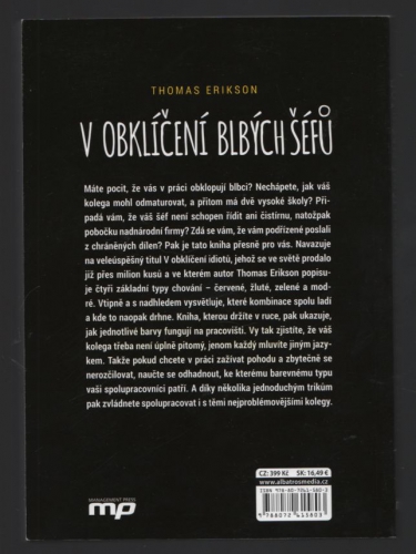 Thomas Erikson, autor bestselleru V obklíčení idiotů se tentokrát zaměřil na místo, kde trávíme třetinu dne. Málokde je taková příležitost ke konfliktům, nedorozuměním, podrazům a intrikám, ale taky k přátelství, vzájemné pomoci a solidaritě. Erikson opět pracuje se čtyřmi typy lidského chování, které rozlišuje podle barev - červené, modré, zelené a žluté. Dozvíte se, které kombinace fungují, které jsou problematické a jak správně jednat s představiteli každého barevného typu.