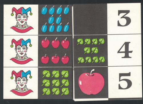 Soubor karet s obrázky a číslicemi. Určeno pro předškoláky a malé školáky
