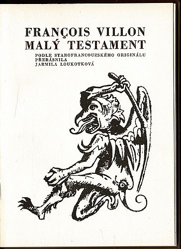 Básnická skladba nejvýznamnějšího francouzského lyrika středověku vznikla na sklonku r. 1456, na rozloučenou s Paříží před Villonovým prvním dobrovolným vyhnanstvím. Básník se vypořádává se svými protivníky, se sebou samým, útočí proti mnišským řádům a vzpomíná na univerzitní léta. Podle starofrancouzského originálu přebásnila Jarmila Loukotková
