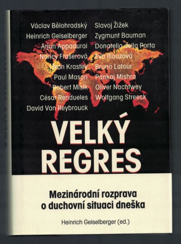 V knize Velký regres, vycházející souběžně ve třinácti jazycích, sedmnáct intelektuálů, renomovaných sociologů, politologů a filozofů, z nichž mnozí jsou české veřejnosti známi (například nedávno zesnulý Zygmunt Bauman, Slavoj Žižek nebo Václav Bělohradský), pátrá po příčinách a souvislostech znepokojivého stavu, v němž jsme se ocitli. Mnohé nasvědčuje tomu, že svět, především ten západní, nezadržitelně vstupuje do temného věku, tedy do éry, kterou můžeme přiléhavě nazvat obdobím regresu. Po éře, v níž vládl historický optimismus a kdy se zdálo, že ideály liberální demokracie již definitivně zapustily kořeny a jejich šíření v čím dál větší části světa už nic nezastaví, přichází bolestné prozření a deziluze, s níž je spojena nejistota, destabilizace, rozvrat a chaos.