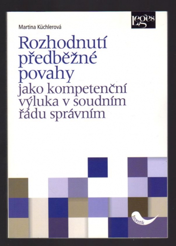 Monografie se zabývá rozhodnutími předběžné povahy ve správním soudnictví, která jsou právě pro svoji dočasnost či předběžnost vyloučena z přezkumné činnosti správních soudů i Nejvyššího správního soudu.