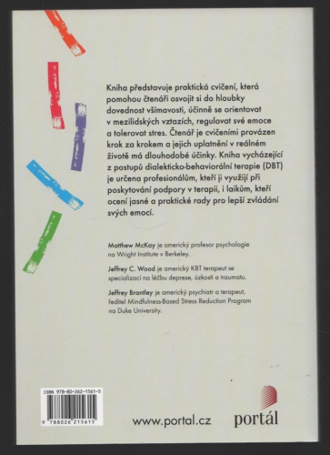 Kniha představuje praktická cvičení, která pomohou čtenáři osvojit si dovednost všímavosti, účinně se orientovat v mezilidských vztazích, regulovat své emoce a tolerovat stres. Autoři staví na základech dialekticko-behaviorální terapie (DBT), jejíž účinnost byla prokázána při léčbě celé škály duševních poruch a potíží, zejména těch charakterizovaných neschopností zvládat své emoce.