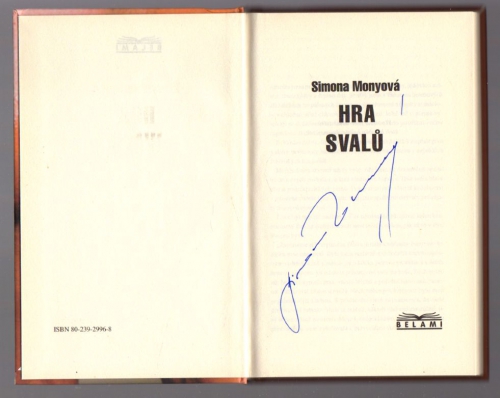 Podpis Simony Monyové - Román Hra svalů autorka věnovala všem nešťastníkům, kteří hloubku kaluže zkoumají tak, že do ní vstoupí - podobně jako hrdinka knihy Darja, která se zamiluje do pana ,,nepravého" a na své cestě kalužemi ztratí věrného ctitele, dobrou přítelkyni, zaměstnání, několik kilogramů živé váhy a spoustu iluzí.