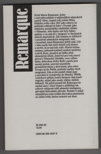 Jeden z nejangažovanějších a nejznámějších autorových románů vznikl jako odezva na politické události v Evropě třicátých let, jako obžaloba nacistického totalitního režimu v Německu. Pranýřuje v něm fašismus ve všech jeho projevech a současně nastavuje pravdivé zrcadlo i tehdejším západoevropským vládám a jejich farizejskému jednání. Děj nás zavádí do autorovi dobře známého prostředí německých emigrantů, kteří byli nuceni opustit své domovy a nevěří, že se ještě někdy vrátí zpátky. Jedním dechem sledujeme pohnuté osudy nedostudovaného medika Ludvíka Kerna a jeho velké lásky, židovské dívky Ruth, kteří jsou pro svůj rasový původ štváni napříč Evropou, dále příběh levicového poslance Josefa Steinera, jeho ženy Marie a ostatních běženců, kteří zalidňují onu dramatickou scénu, již vytvořily samy dějiny v předvečer druhé světové války.