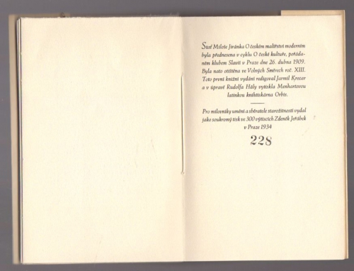 Vydání: I., náklad: 300 číslovaných výtisků (tento výtisk má číslo 228)