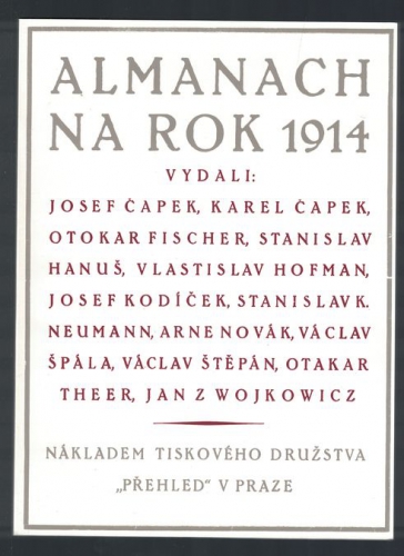 V osmém svazku edice Skrytá moderna chceme upozornit na literární historií opomíjený Almanach na rok 1914 (1913). Nejvýznamnější skupinové vystoupení předválečné avantgardy se poměrně dlouho připravovalo, souběžně s přípravou byla organizována také skupinová čtení, doprovázená diskusemi navazujícími na velkou generační polemiku z roku 1912. Do plánovaného druhého ročníku almanachu se počítalo též se spoluprací absentujících generačních souputníků (R. Werner, F. Langer, E. Taussig, P. Křička), avšak pokračování v nastoupené cestě znemožnily události první světové války, na jejíž fronty byli někteří účastníci odvedeni (S. K. Neumann), jiní během ní podlehli nemoci (O. Theer), další padli (E. Taussig). Umělecky nevyvážené příspěvky Almanachu manifestačně deklarují přihlášení k soudobému, dynamicky se proměňujícímu životu lidské civilizace. K jeho zachycení má sloužit v poezii volný verš (K. Čapek), v próze pak synchronní polyperspektivnost přenesená do literatury z výtvarného kubismu (J. Čapek). Oproti artificiálnosti symbolistně-dekadentní generace a jejímu opovrhování přítomným děním se autoři , pod vlivem vitalismu i futurismu, hlásí k životu „tady a teď“ a výše oceňují snahu hledat inovativní přístupy v umění než dokonalou formu výsledného textu. Zdůrazněním uměleckého syntetismu, sepětím s dalšími uměleckými obory (výtvarné umění, hudba) a obratem k „živému životu“ představuje důležitý mezník ve vývoji české literatury, předznamenávající vystoupení poválečné avantgardy. – Vychází ve spolupráci s Univerzito Palackého v Olomouci.