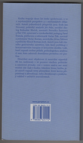 Kniha mapuje deset let české společnosti, a to z nejrůznějších perspektiv a v nejrůznějších oblastech. Autoři jednotlivých příspěvků jsou: fyzik Jan Novotný, politický analytik Jiří Pehe, sociální ekolog Bohuslav Blažek, novináři Petruška Šustrová a Petr Uhl, spisovatel a vysokoškolský pedagog Pavel Švanda, publicista a informatik Václav Žák, novinář a polonista Václav Burian, socioložka Jiřina Šiklová a politický filosof Roman Joch. Autoři jsou lidé různého generačního zaměření, lidé, kteří publikují v konzervativním časopise či levicovém deníku. Lidé, kteří napsali osobní příběh, politologickou analýzu či text, kam zahrnuli desetiletou proměnu své profese. Desetiletí není objektivní či neutrální výpovědí 90. let, nedostaly v ní prostor všechny politické a názorové proudy; což v tomto směru ani není možné. Jde však o knihu, řekněme živou; knihu, jejíž autoři napsali texty přemýšlivé, které leccos připomínají a aktualizují, nebo zhodnocují a poskytují náhled v určitých souvislostech.