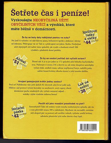 Vítejte ve světě knihy Neobyčejná užití obyčejných věcí. Na následujících stránkách najdete tisíce chytrých nápadů, které vám ušetří peníze. Takže se pusťte do čtení, prozkoumejte spíž i komoru a ještě dnes začněte šetřit.