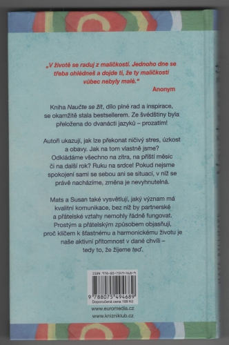 Laskavá a podnětná kniha Naučte se žít nadchla čtenáře po celém světě a stala se největším švédským bestsellerem. Cesta ke štěstí, spokojenému životu a harmonii se může stát zdrojem moudrosti, jako k tomu došlo u manželského páru, který se dokázal probrat z letargie, vyhoření i chorob a dnes žije šťastně. Všichni se můžeme jejich příkladem inspirovat. Kniha pomůže mnoha lidem a dodá jim sílu změnit vlastní život.