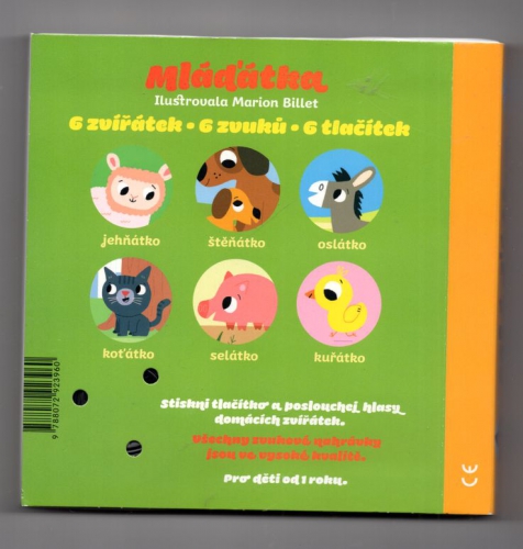 Zmáčkni tlačítko a poslouchej zvuky, které vydávají mláďátka známých zvířátek. Reálné zvuky jehňátka, koťátka, oslátka, šťěňátka, selátka a kuřátka jsou ve vysoké kvalitě.